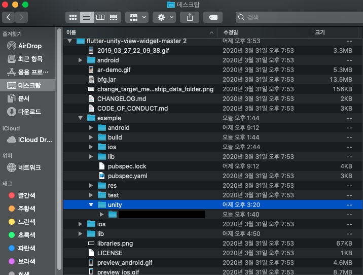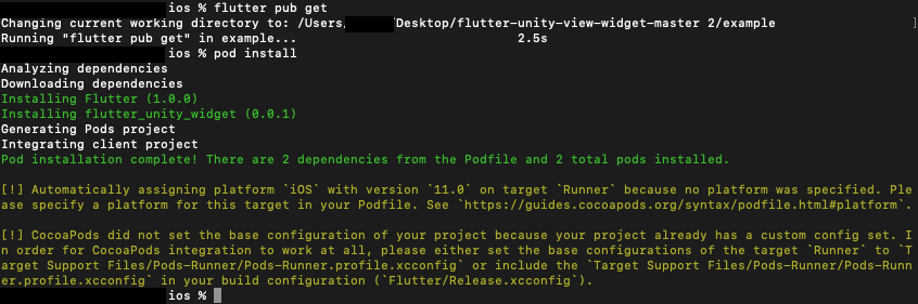 Terminal에서 flutter-unity-view-widget > example > ios 이동 후 아래 코드 실행