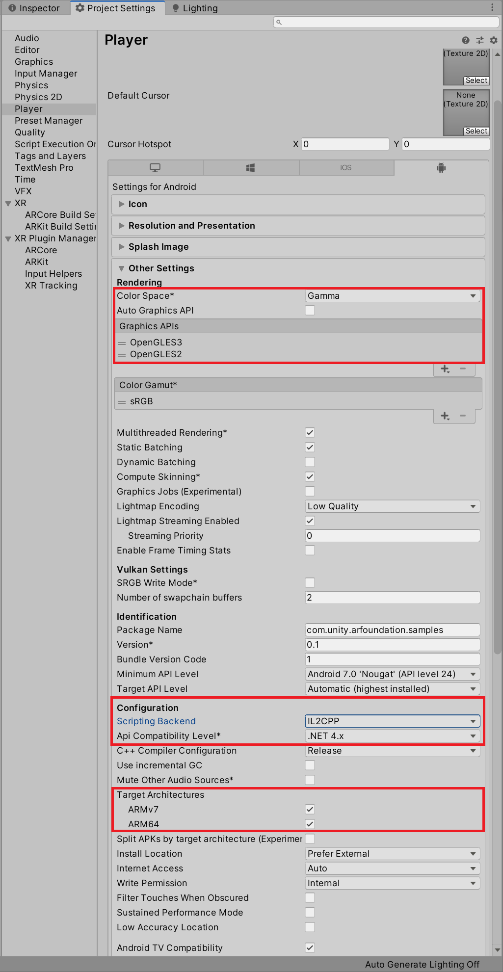 - Target Architectures : ARMv7, ARM64 체크 (x86은 Unity 2019.2+ 이상에서는 지원 중단)