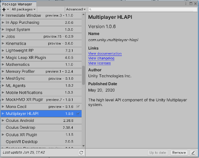 2. Package – Multiplayer HLAPI, XR Legacy Input Helpers