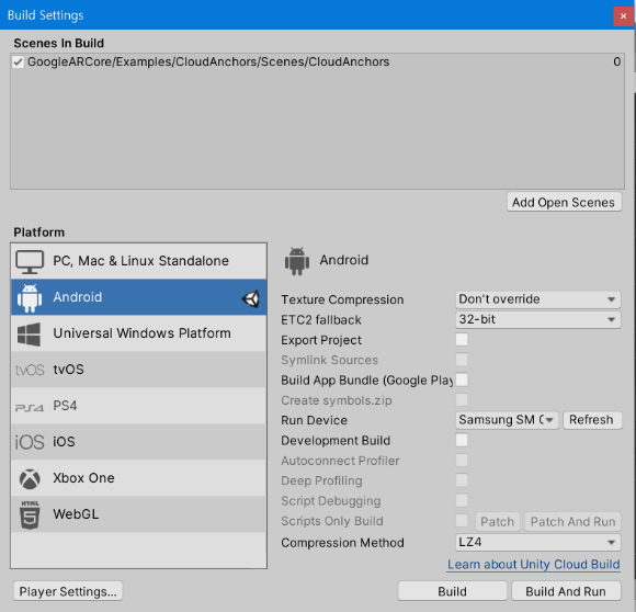 Quickstart for Cloud Anchors in Unity for Android | ARCore